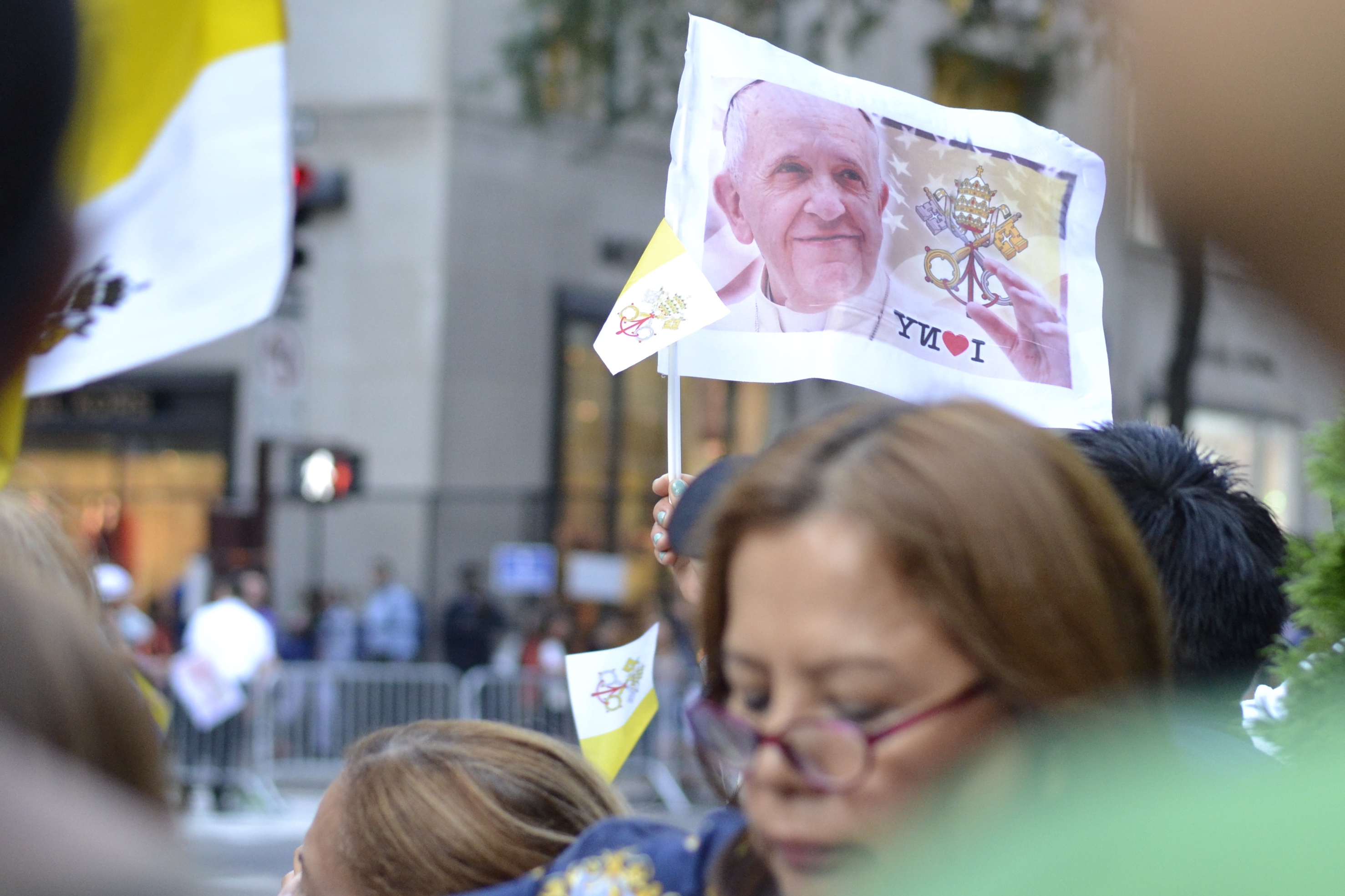 We could hear the roar of the crowds as the Pope Mobile got closer and braced for the surge from behind. It never came. Just incredibly loud and joyful shouts of “Papa!”, Papa!” filling the air, a sea of waving flags. Then tears. Lots of them and from every direction. Then laughter again as people shared their photos and videos of the procession with each other.