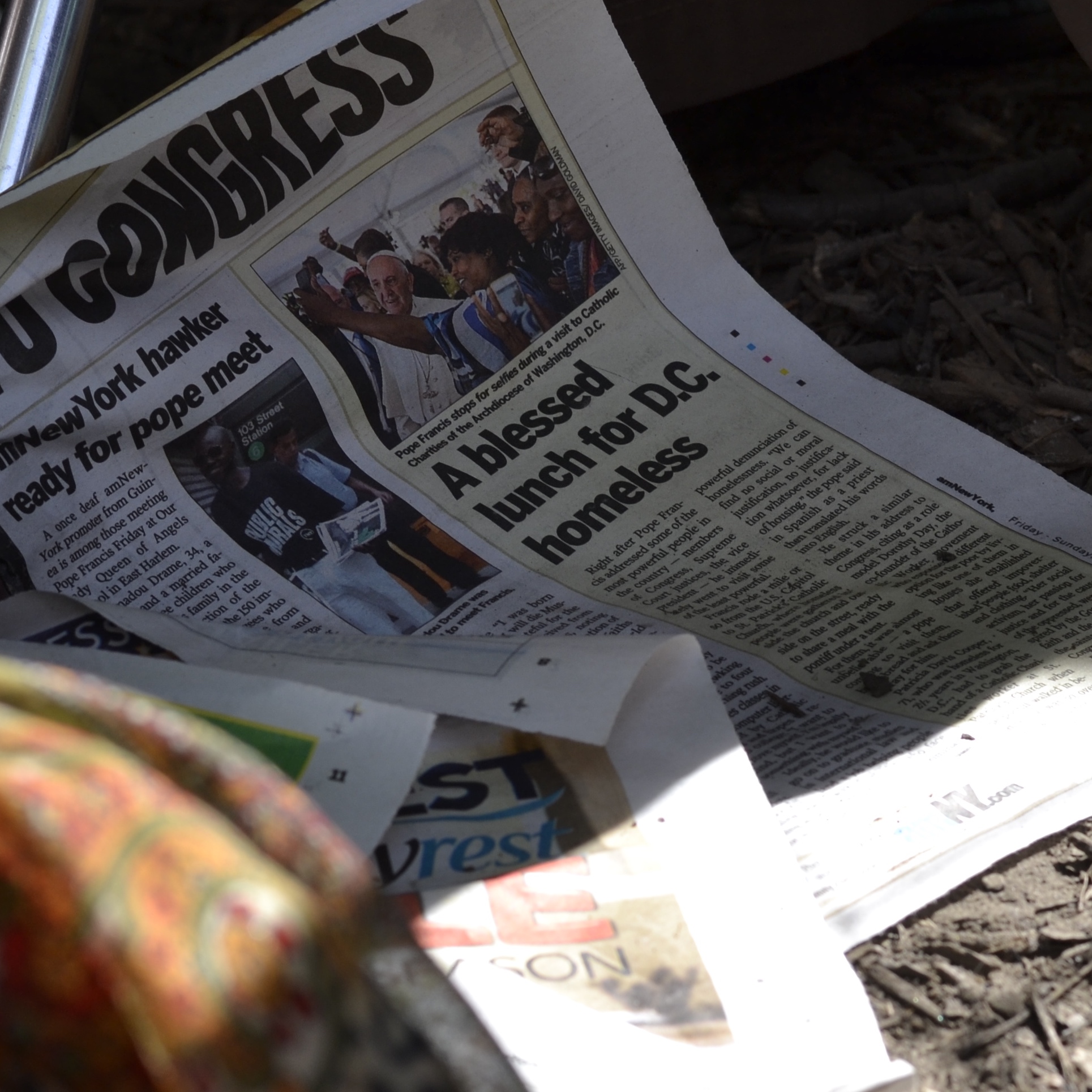 Early the next morning we were in line at Central Park. A few hours later we passed through security and were standing along the procession route as hordes of Catholics closed in behind us. It was 11:30 a.m. The Pope was coming at 5:00 p.m. You couldn’t bring much with you: a purse, small bag (food & water), phone and camera. What you had for standing space was what you had for sitting space so while some crunched up theirs legs others stretched theirs. Then they switched.