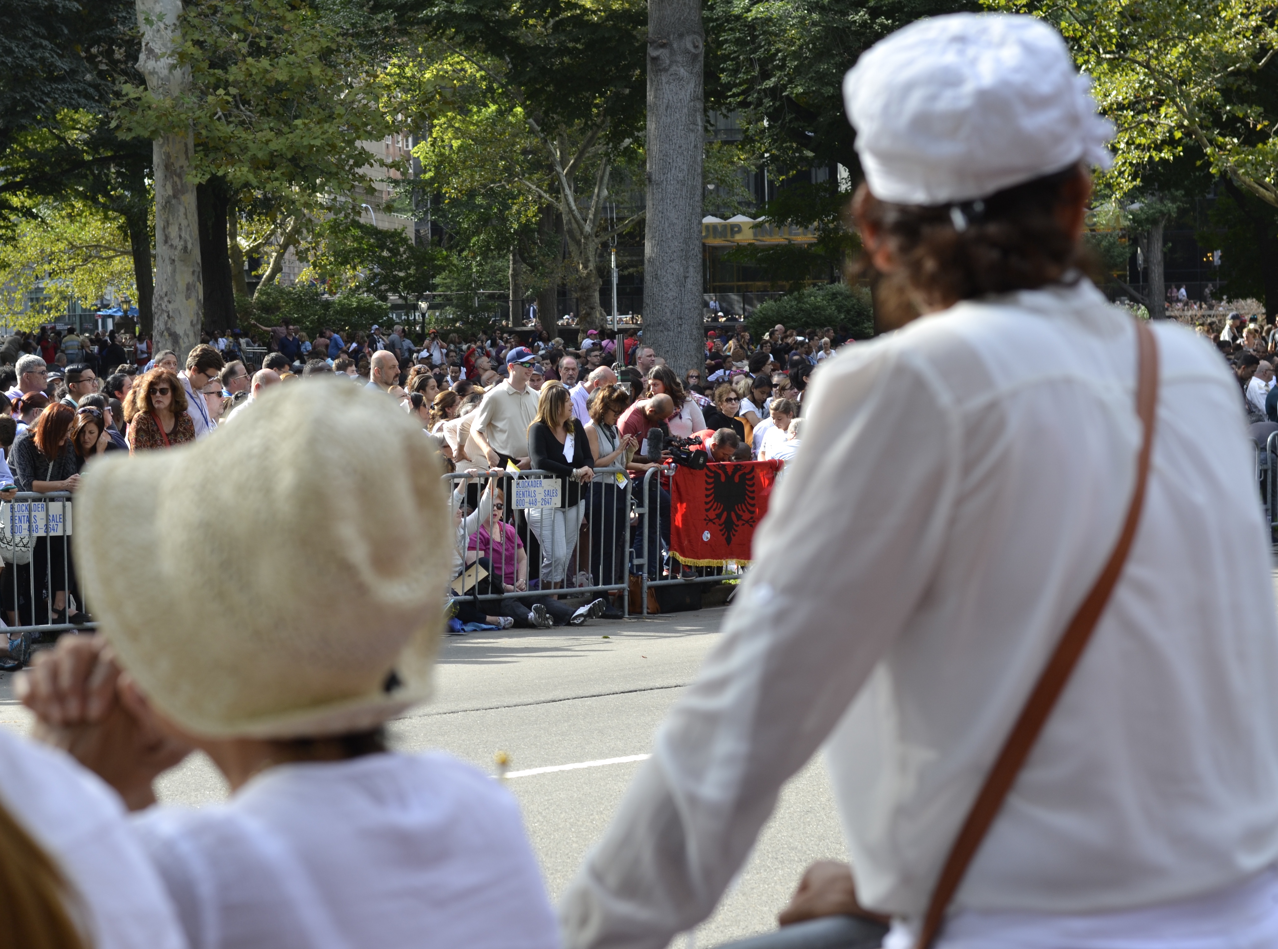 Rejeanne & I went to New York to see the Pope without tickets to anything. We figured we would run around NYC in hopes of catching a glimpse, being in the Shadow of St. Peter for a few seconds. When we arrived at my niece’s house she gleefully told us we might have a shot of seeing the man in white after all. Her friend had tickets. They were for the procession in Central Park. They were contingent. We would have them if our donor decided not to go. We wouldn’t know until the next morning – the day of the procession.